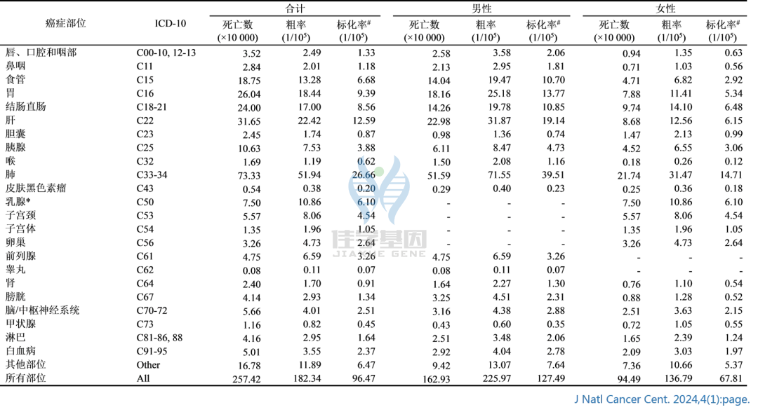 SG亚洲胜游基因检测】国家癌症中心发布:2024年中国所面临的癌症死亡或患病风险